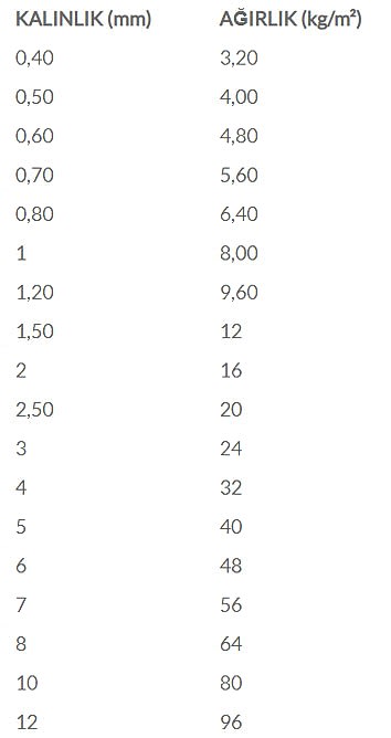 Kalınlıklar ve Ebatlar: 0,40 – 12 mm / 1000 – 1250 – 1500 – 2000 mm